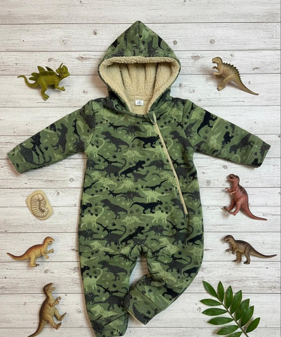 * Außenseite: die Optik eines bedruckten Sweatstoffs (hier mit einem coolen Dinosaurier-Tarnmuster).
