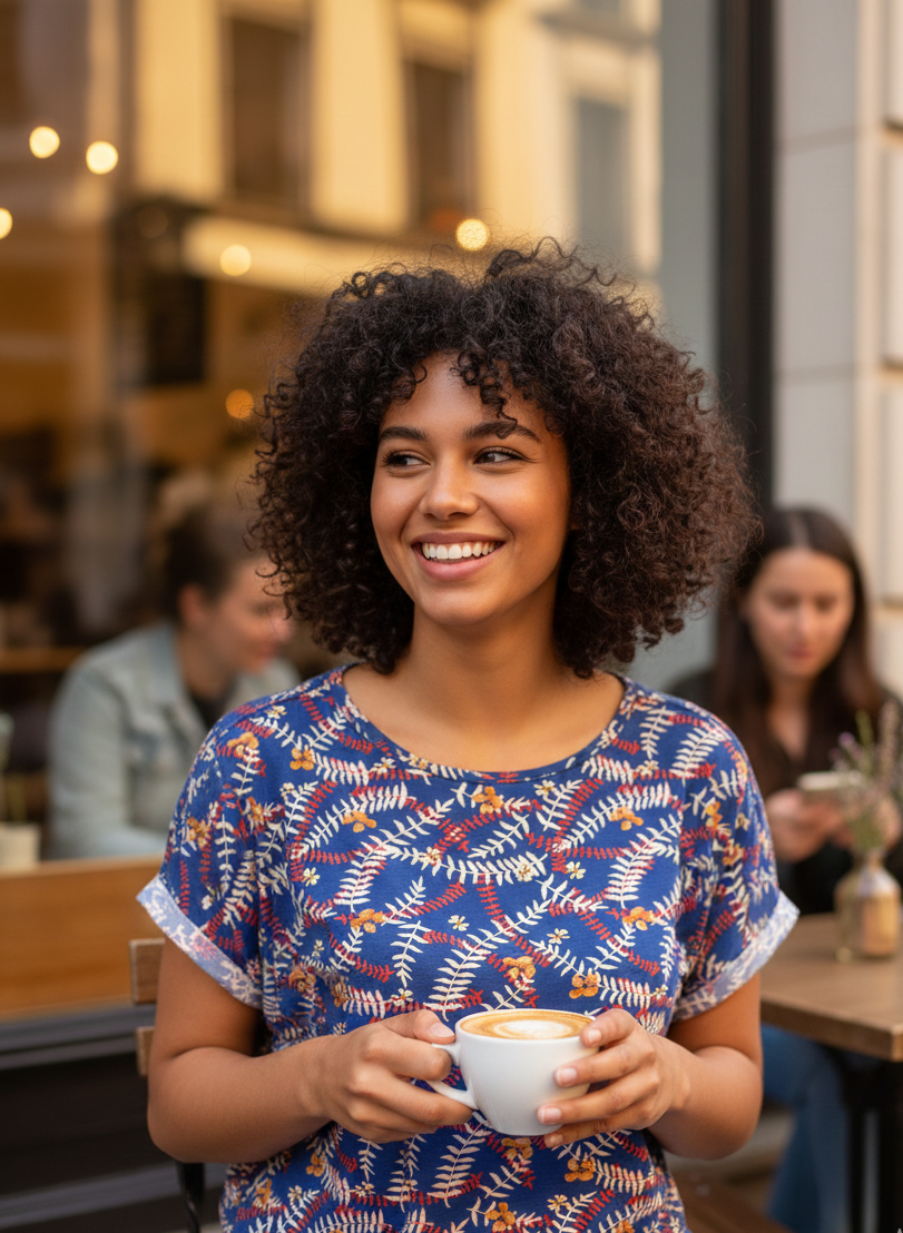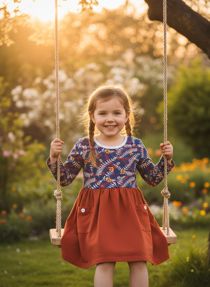 Die harmonische Farbkombination wirkt modern und zugleich verspielt – perfekt für Kleidung, die gute Laune verbreitet.