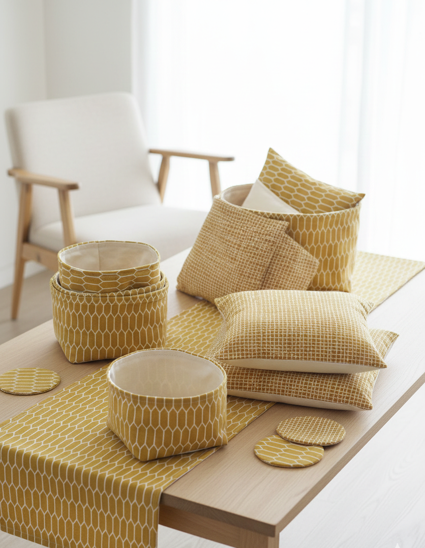 Baumwoll-Webware: Modernes Rauten-Design in Senfgelb