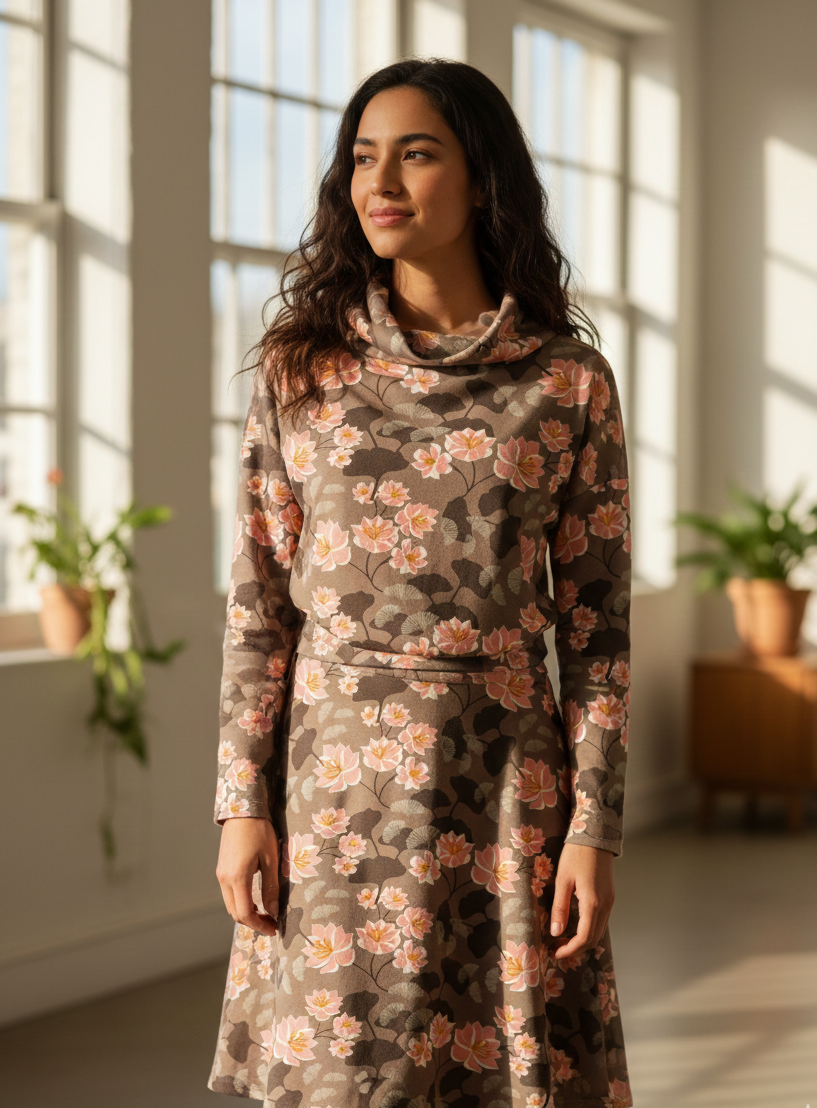 Die gedeckten Farben kombiniert mit den floralen Highlights machen diesen Stoff zum idealen Begleiter für:
