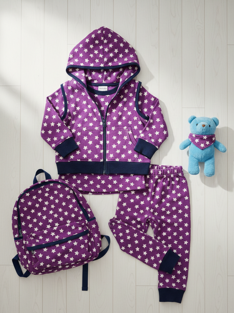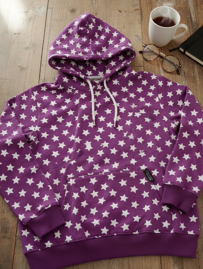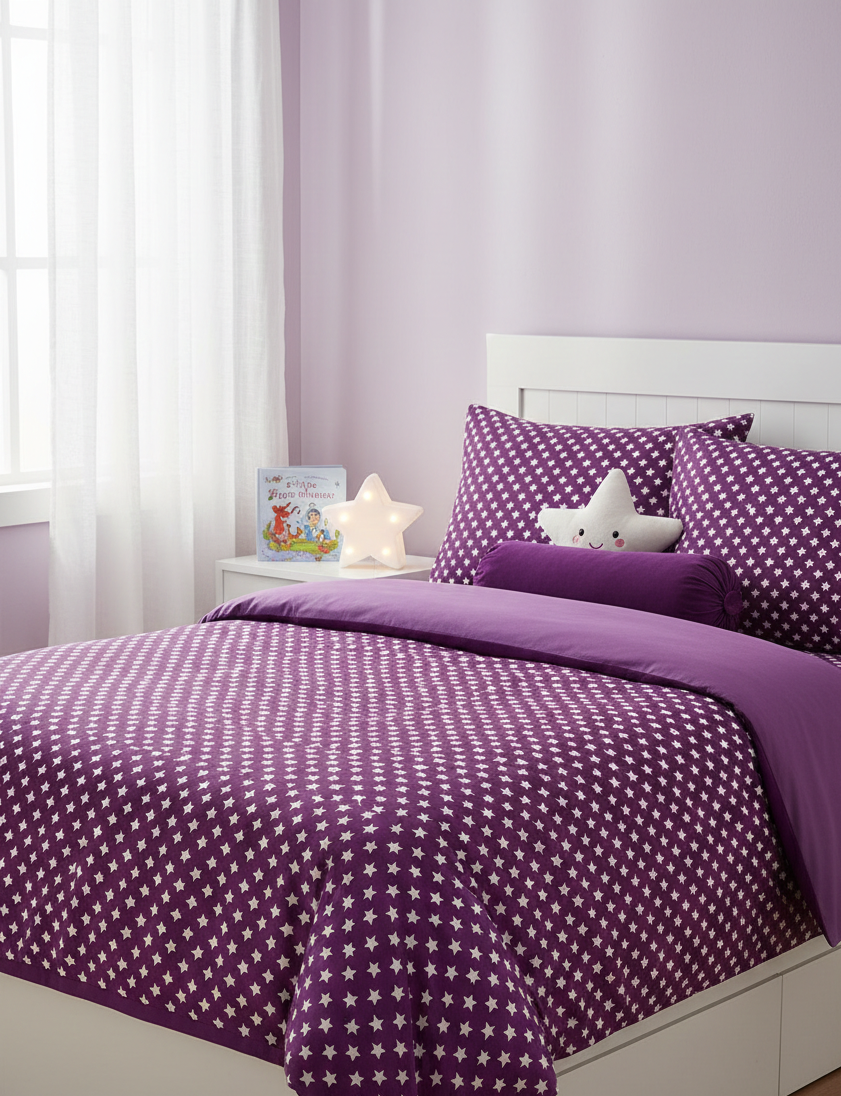 Verleihe Deinen Nähprojekten eine magische Note! Unser hochwertiger Baumwolljersey in sattem Violett mit klassischen weißen Sternen ist ein absoluter Allrounder. Ob für kleine Abenteurer oder kleine Prinzessinnen – dieser Stoff kombiniert zeitloses Design mit höchstem Tragekomfort.