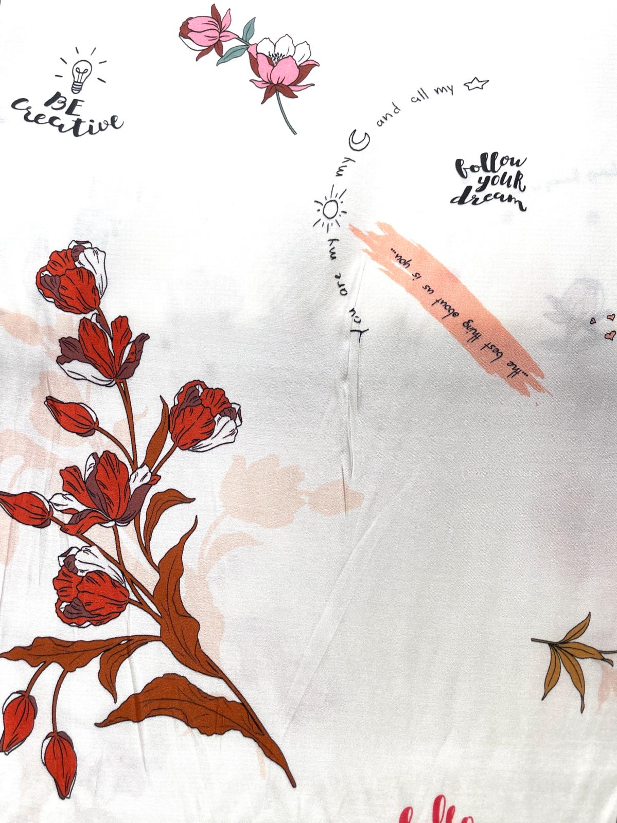 Verleihe Deiner Garderobe eine Brise Leichtigkeit! Diese hochwertige Bio-Viskose (100 %) besticht durch einen traumhaft fließenden Fall und einen seidig-kühlen Griff. Mit dem verspielten Blumenprint und motivierenden Schriftzügen ist der Stoff ein echtes Highlight für individuelle Sommerlooks. Dank Öko-Tex Standard 100 Zertifizierung nähst du garantiert schadstofffrei und hautschonend.