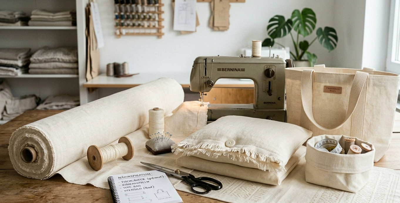 Dank seiner Griffigkeit ist dieser Stoff ideal für Projekte, die Formstabilität verlangen. Nähe daraus stilvolle Kissenbezüge,Tischläufer mit trendigen Fransenkanten oder robuste Utensilos. Auch für Vorhänge, die einen natürlichen Fall garantieren, oder nachhaltige Einkaufstaschen ist dieses Leinen die erste Wahl.