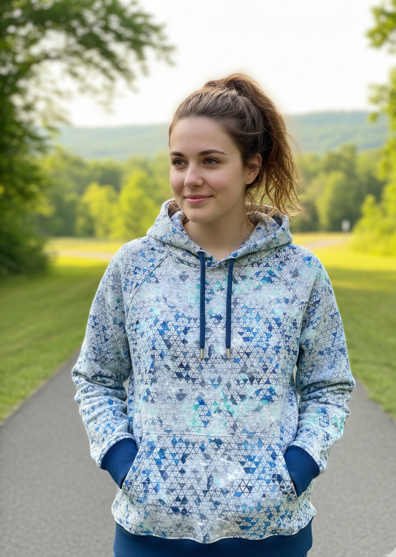 French Terry „Blue Geometric“ – Moderner Sommersweat