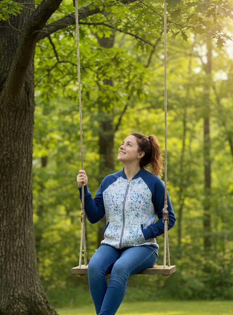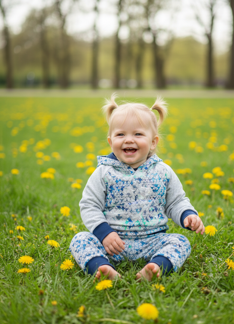 Dieser Stoff ist ein echtes Multitalent. Ob für gemütliche Kinder-Sets, lässige Hoodies, trendige Bomberjacken oder maritime Accessoires – der „Blue Geometric“ lässt sich hervorragend mit Uni-Stoffen in Navy, Grau-Melange oder Mintgrün kombinieren.