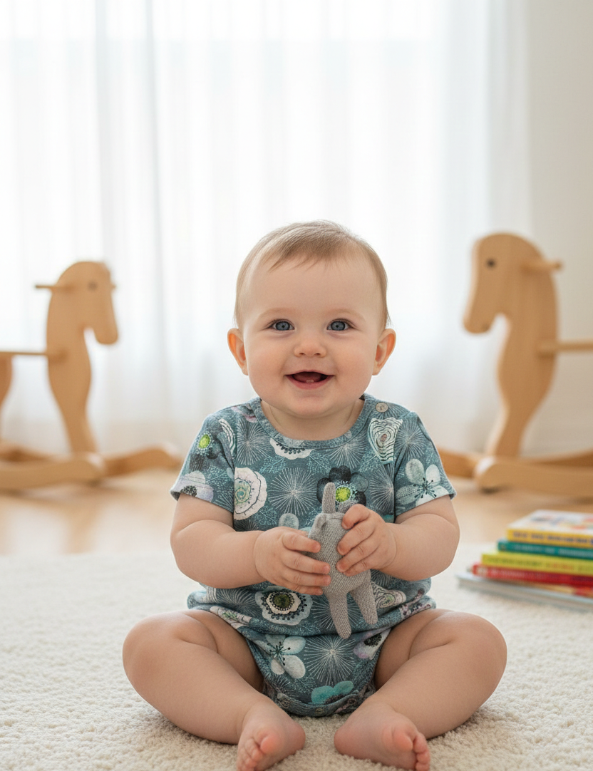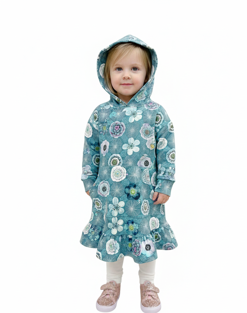Verwandle Deine Nähprojekte in echte Hingucker! Dieser hochwertige French Terry besticht durch sein einzigartiges Design: Ein harmonisches Zusammenspiel aus abstrakten Blüten und feinen Mandalas auf tiefem Petrol. Die Akzente in Flieder und Mint verleihen dem Stoff eine moderne Optik, ideal für Groß und Klein.