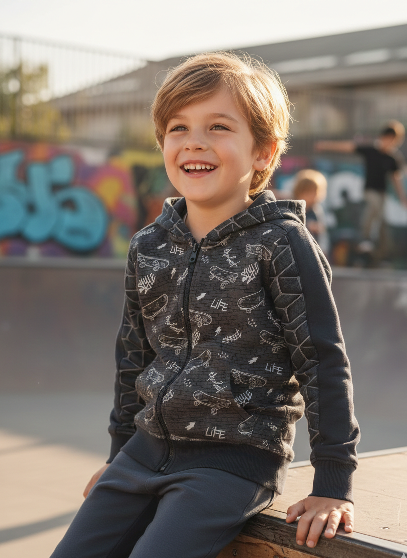 French Terry „Skate Life“ – Urbaner Style in Anthrazit-Melange