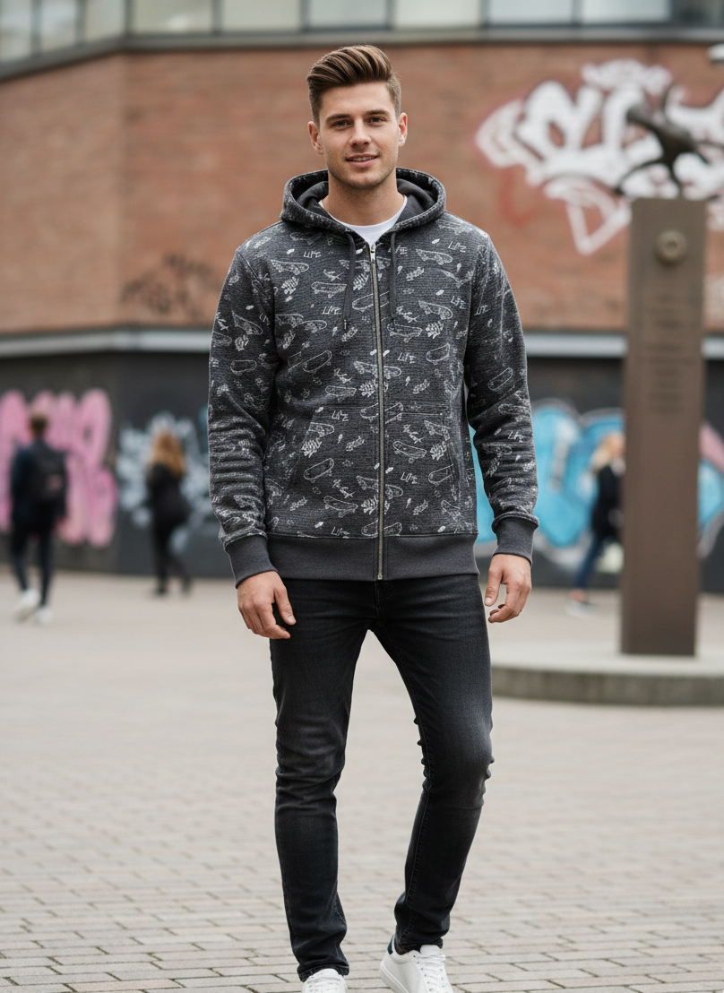 Produktinformationen "French Terry „Skate Life“ – Urbaner Style in Anthrazit-Melange"