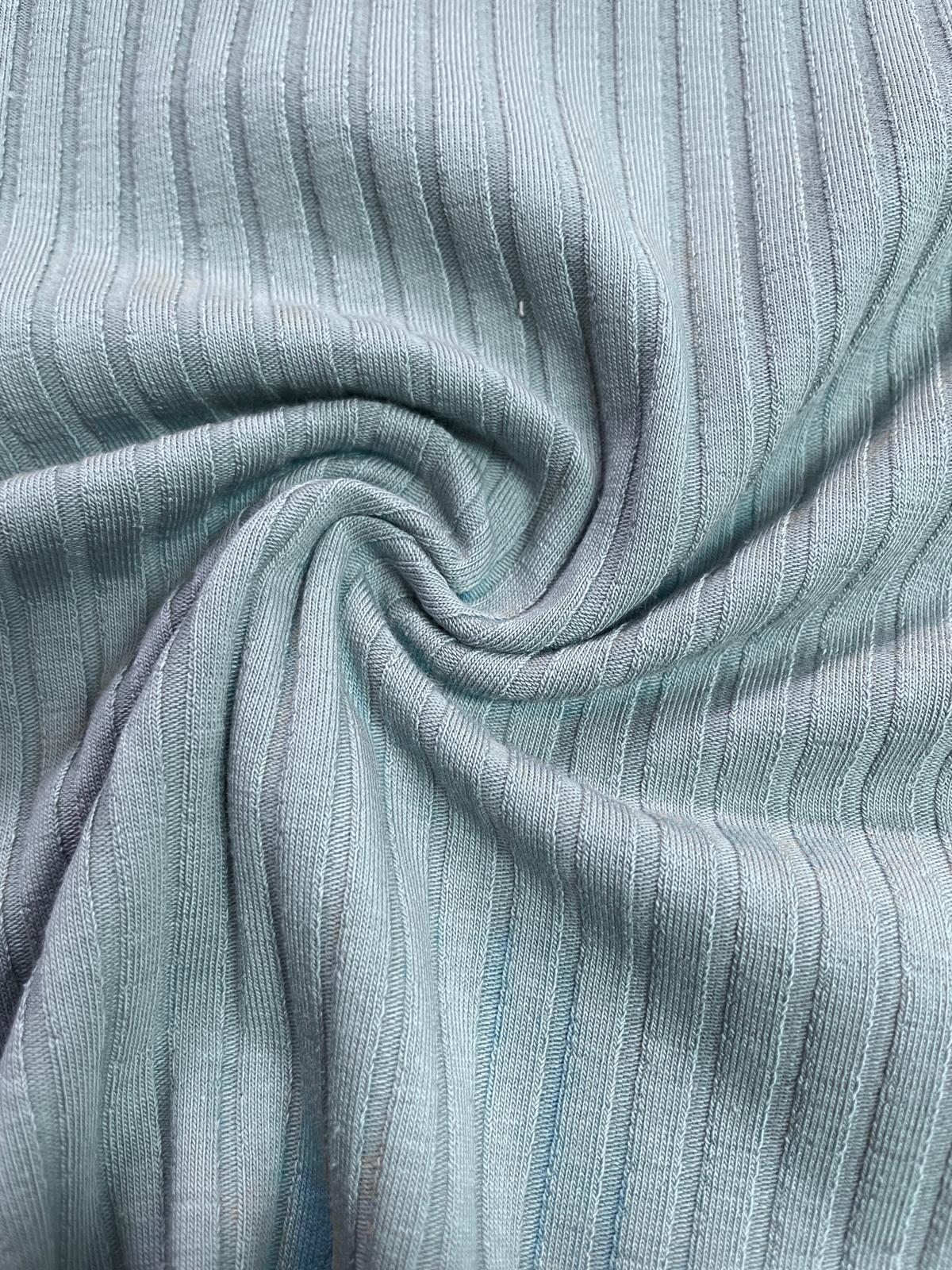 Dieser Stoff ist ein klassischer Rippjersey, erkennbar an seinen deutlich vertikal verlaufenden, erhabenen Rippen. * Struktur: Die Rippen sind gleichmäßig, mittelbreit und verleihen dem Material eine dreidimensionale Textur.