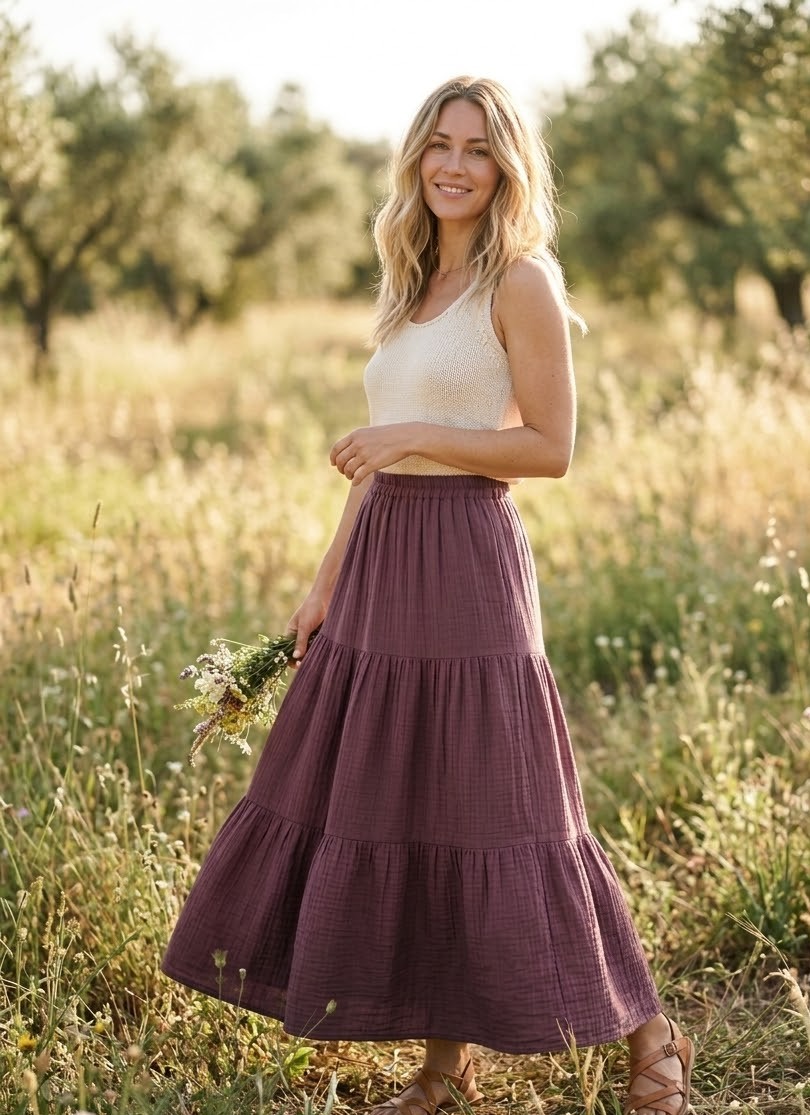 Unser Musselin in Mauve/Beere vereint einen edlen, gedeckten Farbton mit der beliebten Double-Gauze-Qualität. Das doppellagige Gewebe aus reiner Baumwolle ist blickdicht, atmungsaktiv und unvergleichlich sanft zur Haut. Die markante Crinkle-Optik verleiht dem Stoff eine lebendige Struktur und macht ihn zum perfekten Material für zeitlose, modische Unikate.